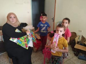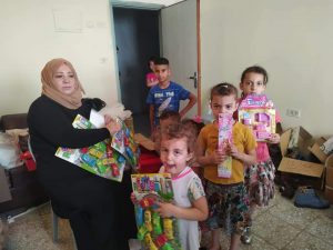 قامت جمعية بسمة القدس الخيرية برئاسة السيدة هيام عويضات بمساعدة مدير المكتب السيد حسن الوحيش بتوزيع الالعاب والألبسة والأحذية على أطفال الأسر الفقيرة والايتام بمناسبة قدوم عيد الفطر السعيد وكل عام وانتم بالف خير